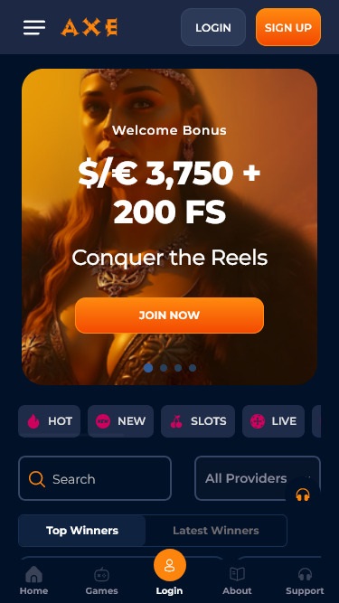 Ei sovellusta tarvita – AxeCasino on täysin responsiivinen ja toimii sujuvasti älypuhelimilla ja tableteilla. Kaikki pelit ja ominaisuudet ovat käytettävissä mobiiliselaimilla.