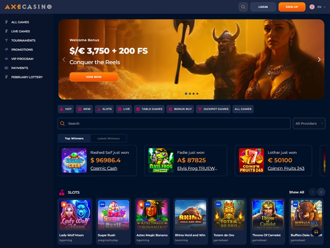 AxeCasino tarjoaa tehokkaan nettipelikokemuksen massiivisella pelivalikoimalla, salamannopeilla kryptoystävällisillä maksuilla ja anteliailla monitasoisilla bonuksilla sekä satunnaisille pelaajille että high rollereille.