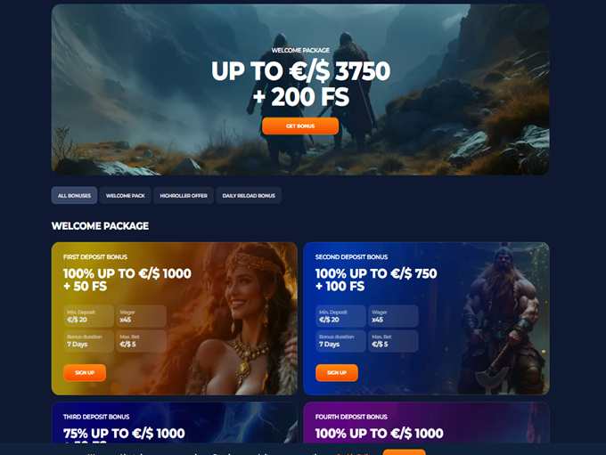 AxeCasino tarjoaa kaksi räätälöityä tervetuliaispakettia: Standardin ja Highrollerin. Tervetuliaisbonuspaketti on erittäin antelias ja kattaa jopa neljä talletusta.