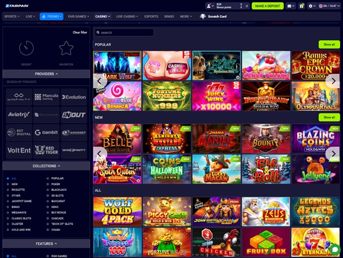 Bonusehdot ja yleiset ehdot on lueteltu selkeästi – suosittelemme lukemaan ne huolellisesti ennen talletuksen tekemistä. FairPari-kasino palvelee sekä kasino- että urheilun harrastajia.