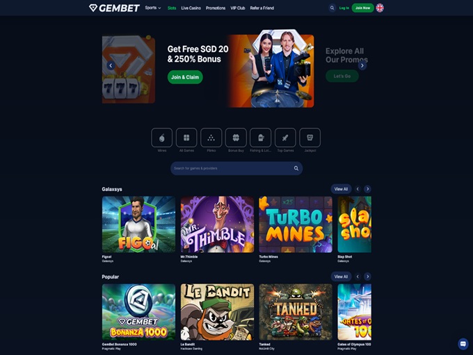 Gembet Casino on selkeästi optimoitu Singaporen ja Malesian markkinoille ja tarjoaa: