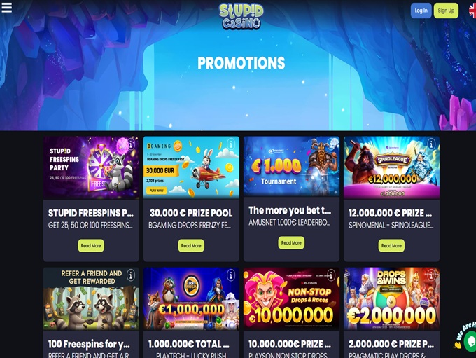 Stupid Casino on täysin optimoitu mobiililaitteille ja tarjoaa sujuvan ja responsiivisen käyttökokemuksen sekä Android- että iOS-laitteilla. Olitpa sitten pyörittämässä kolikkopelejä, pelaamassa live-pelejä tai lunastamassa kampanjoita, kaikki latautuu nopeasti selaimessa ilman sovellusta. Design pysyy intuitiivisena ja hauskana pienemmillä näytöillä, ja siinä on pyyhkäisevät valikot ja helppo pääsy peleihin, tukeen ja tiliasetuksiin.